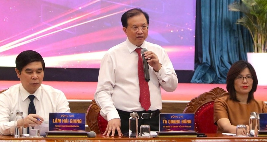 Thứ trưởng Bộ VH-TT&DL Tạ Quang Đông phát biểu tại buổi họp báo