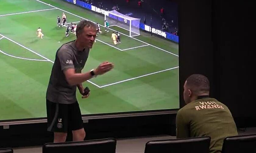 Đoạn video từ bộ phim tài liệu mới của Movistar ghi lại khoảnh khắc Enrique mắng xối xả Mbappe trong cuộc họp riêng giữa hai người trước trận PSG gặp Barca ở tứ kết lượt về Champions League mùa 2023-2024.