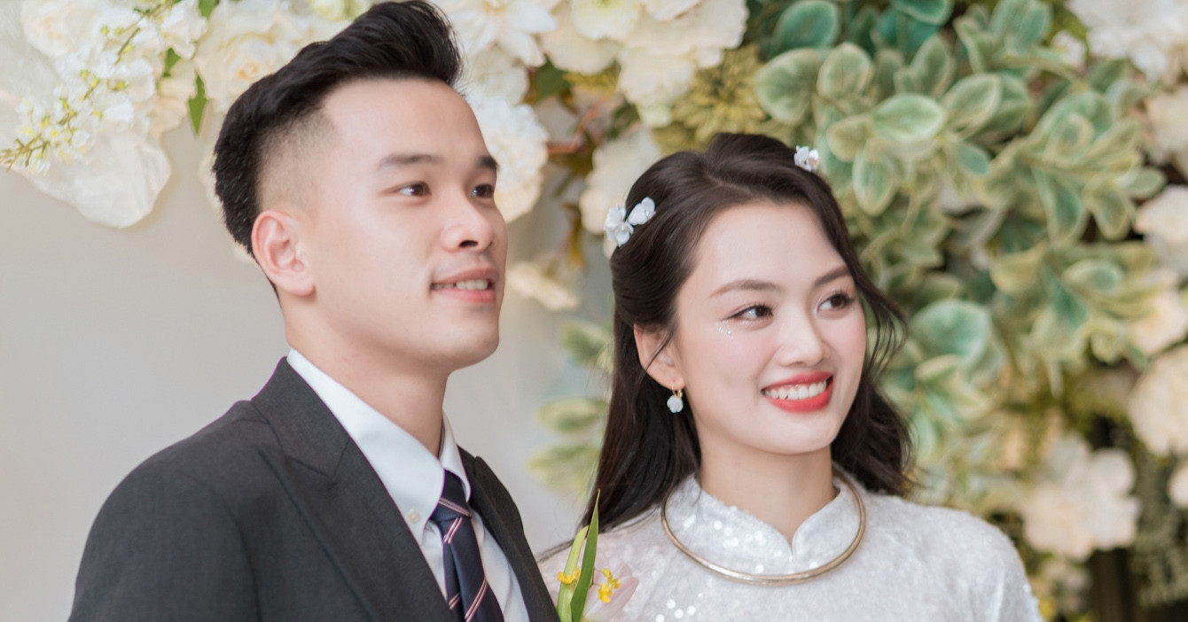 Hoa khôi bóng chuyền Thu Hoài xinh đẹp rạng ngời, sánh đôi hạnh phúc với chồng sắp cưới trong lễ ăn hỏi vừa được tổ chức ở Thái Bình.