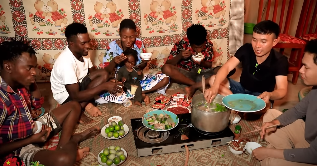 Khi được Bảo hỏi cảm nhận về món lẩu thập cẩm kiểu Việt Nam, người phụ nữ châu Phi khen ngon và nói không nghĩ mùi vị hấp dẫn đến vậy.