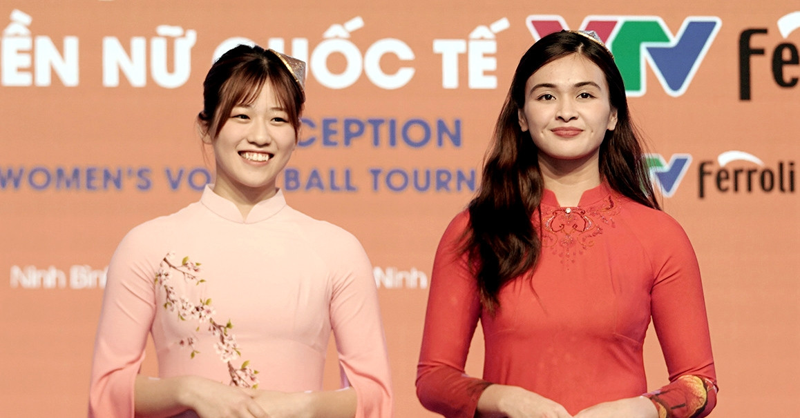 Ngắm dàn chân dài bóng chuyền Nga, Hàn Quốc diện áo dài ở VTV Cup