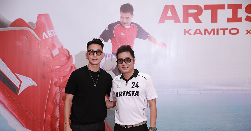Danh thủ Hồng Sơn và Nghiêm Xuân Tú trong buổi ra mắt bộ sưu tập. Ảnh: BTC